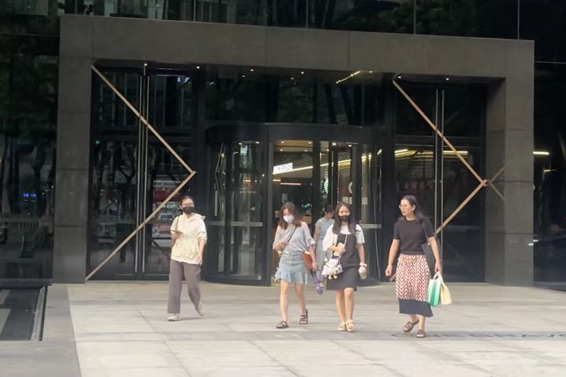 9月23日傍晚,记者在广州街头看到,有临街办公楼的工作人员在窗户上贴“米字”形状的胶布。还有写字楼的大厦玻璃门钉上了木条,应对台风。