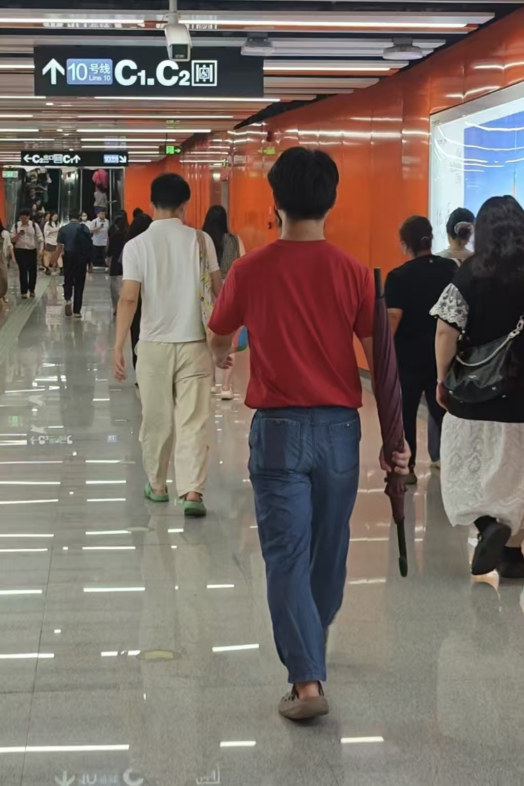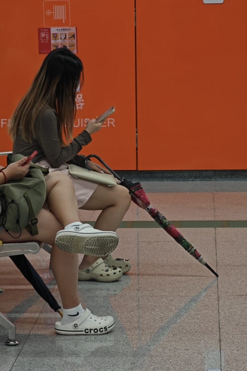 正值下班时段桥宜速配,有市民已经提前换上了准备好的拖鞋、洞洞鞋、人字拖等“广东省鞋”回家。